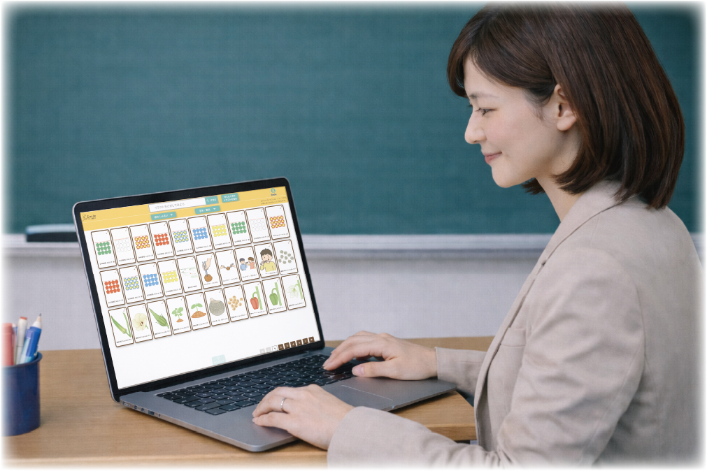 Emileは、教具を中心に、子どもたちが学びに向かうきっかけをつくるためのサービスです。授業や子どもたちの姿に合わせて、教具をどのように使うか、どのように組み合わせるか。必要に応じて、イラストを提示したり、紙に印刷して教室で使う教具として活用したりします。